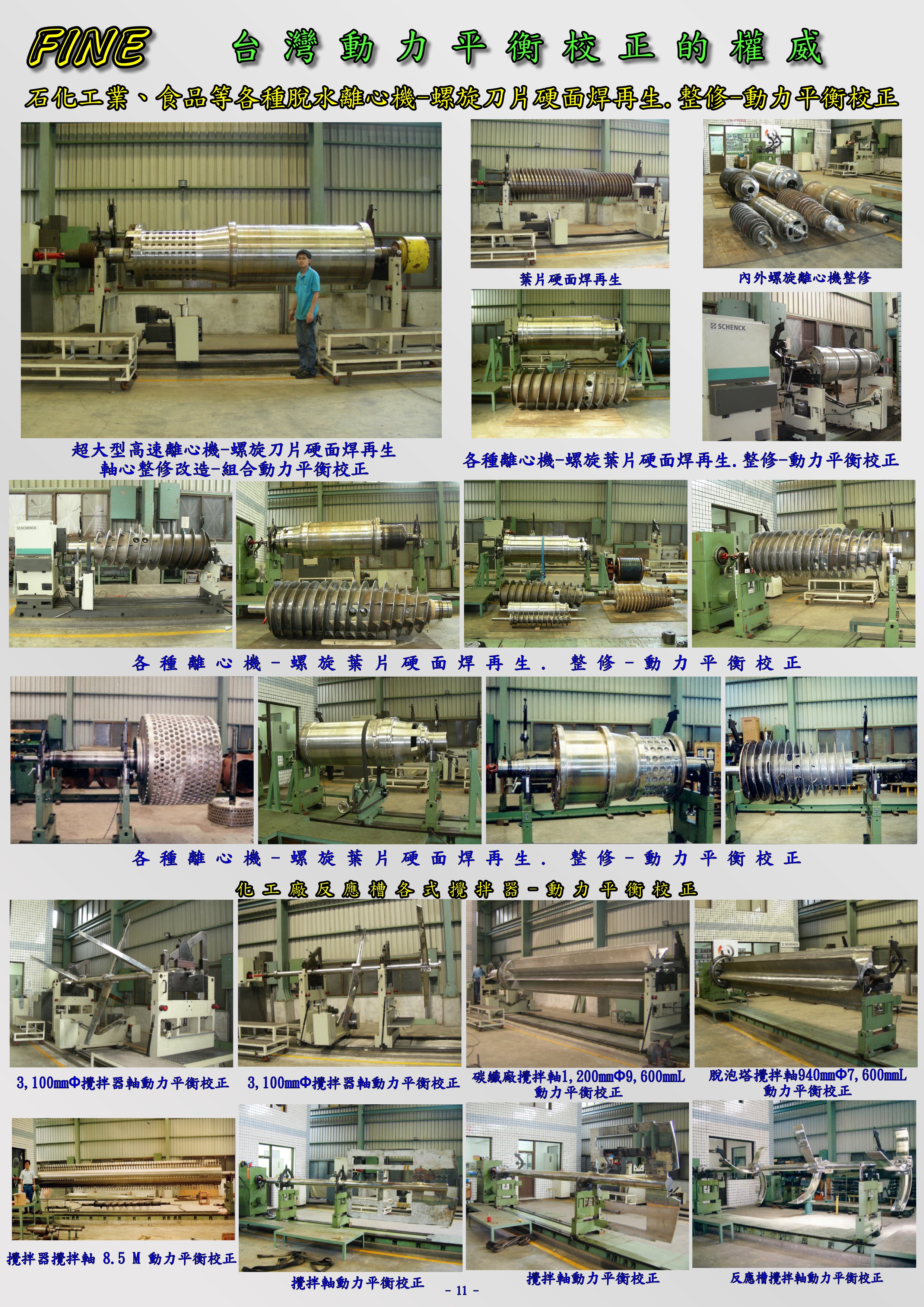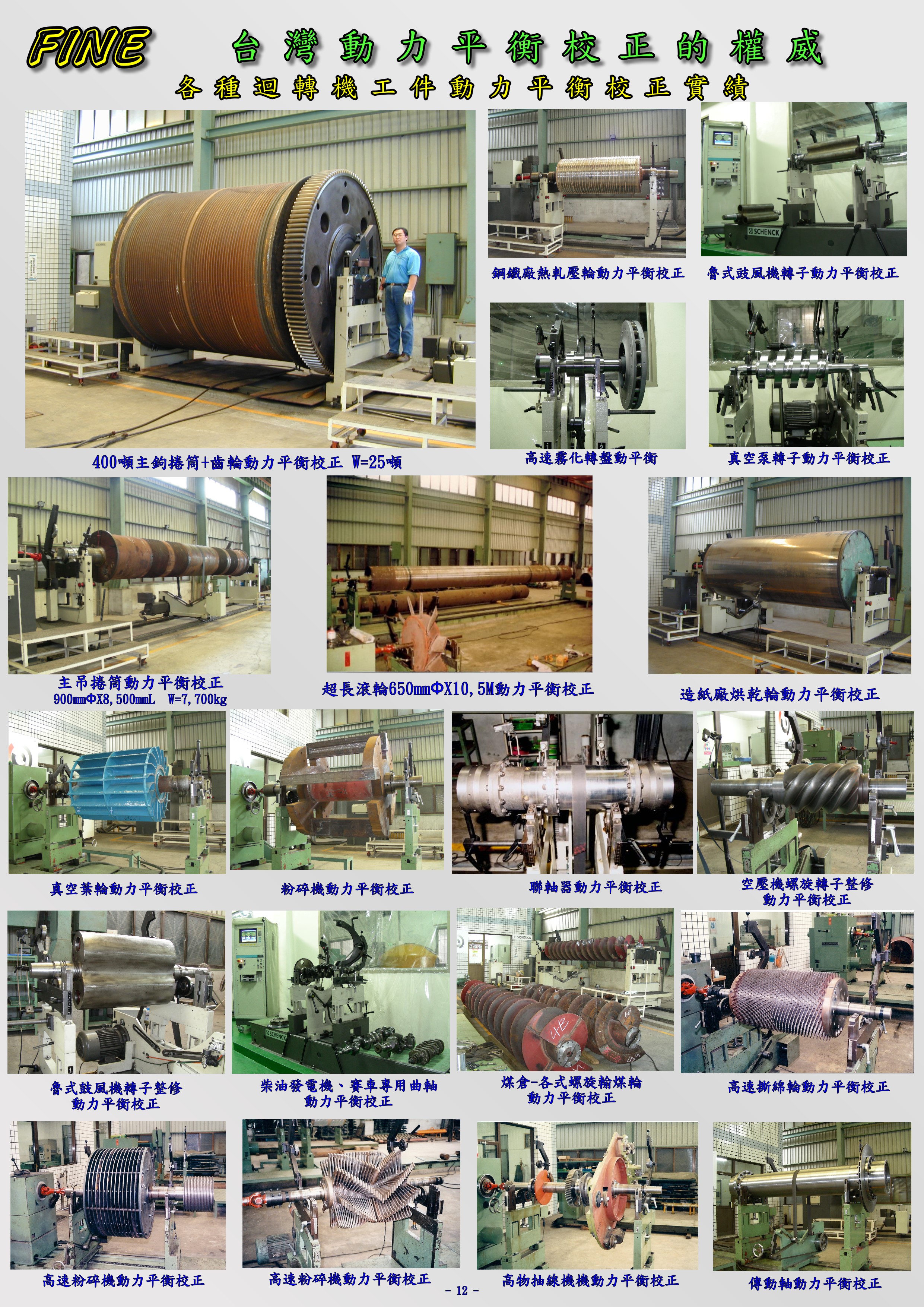 動平衡能力 0.1kg ~ 40頓. 最大直徑 4M、長度 13M