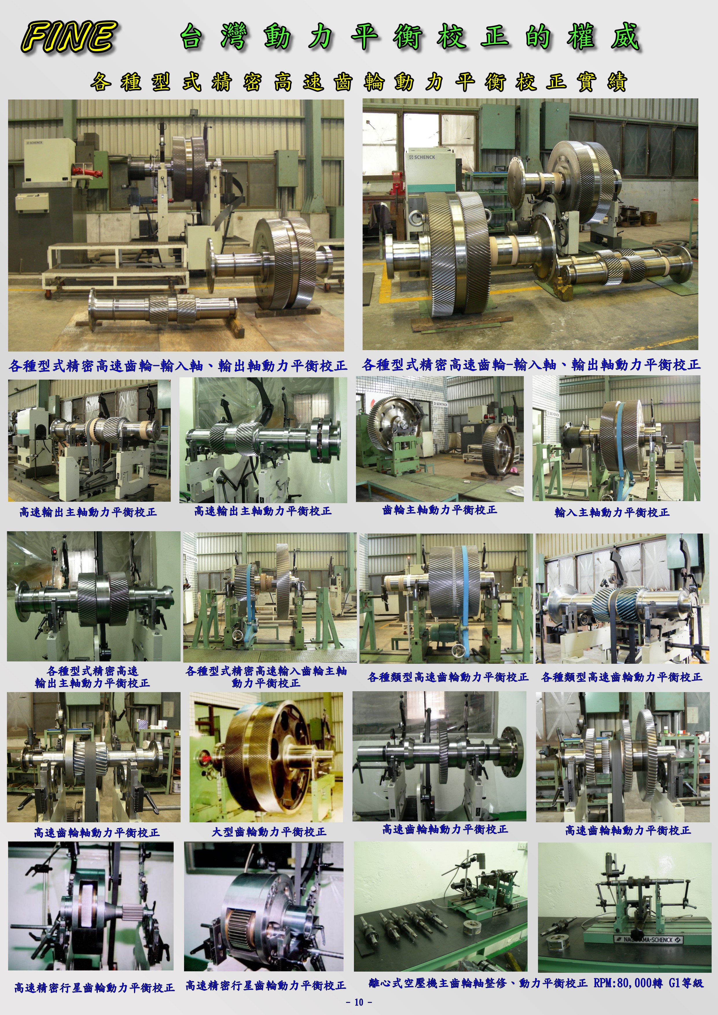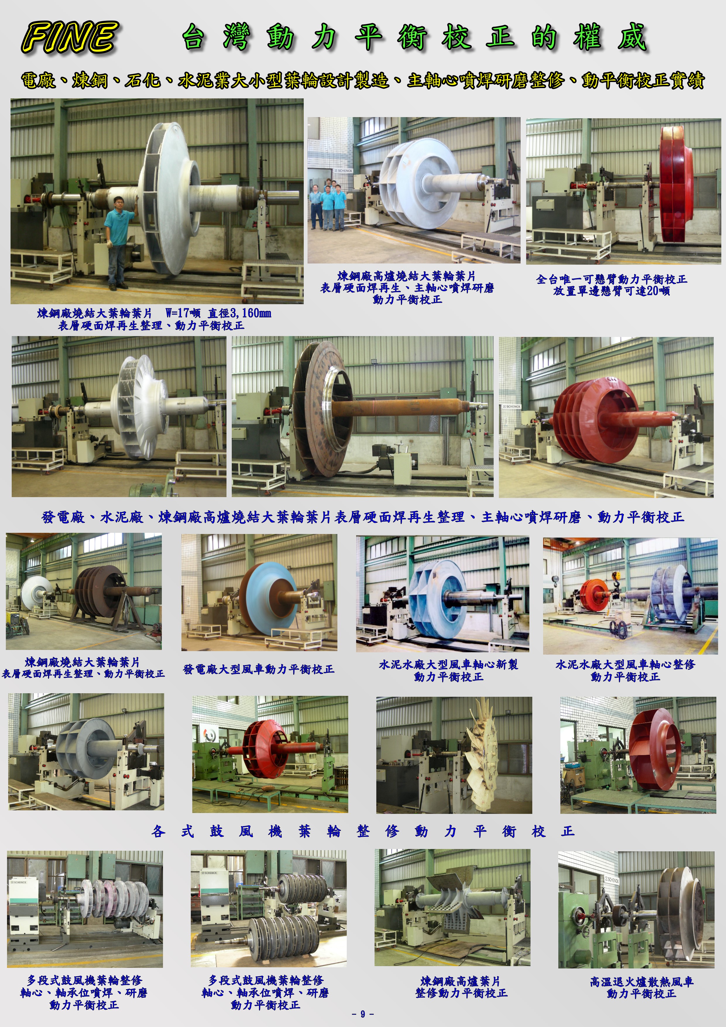 動平衡能力 0.1kg ~ 40頓. 最大直徑 4M、長度 13M